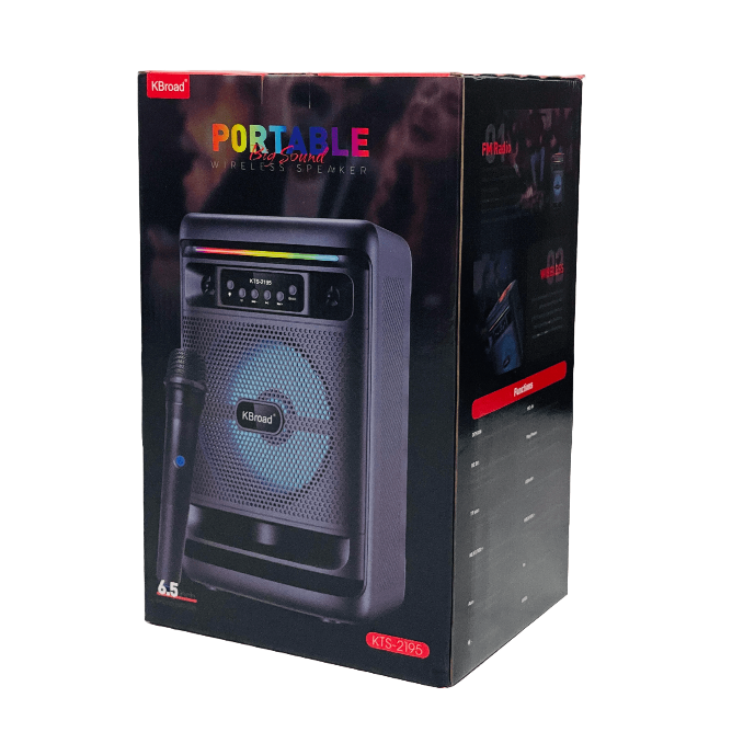 Key Features: Includes a wireless microphone, supports Bluetooth connectivity, FM radio, and has USB/TF card slots.