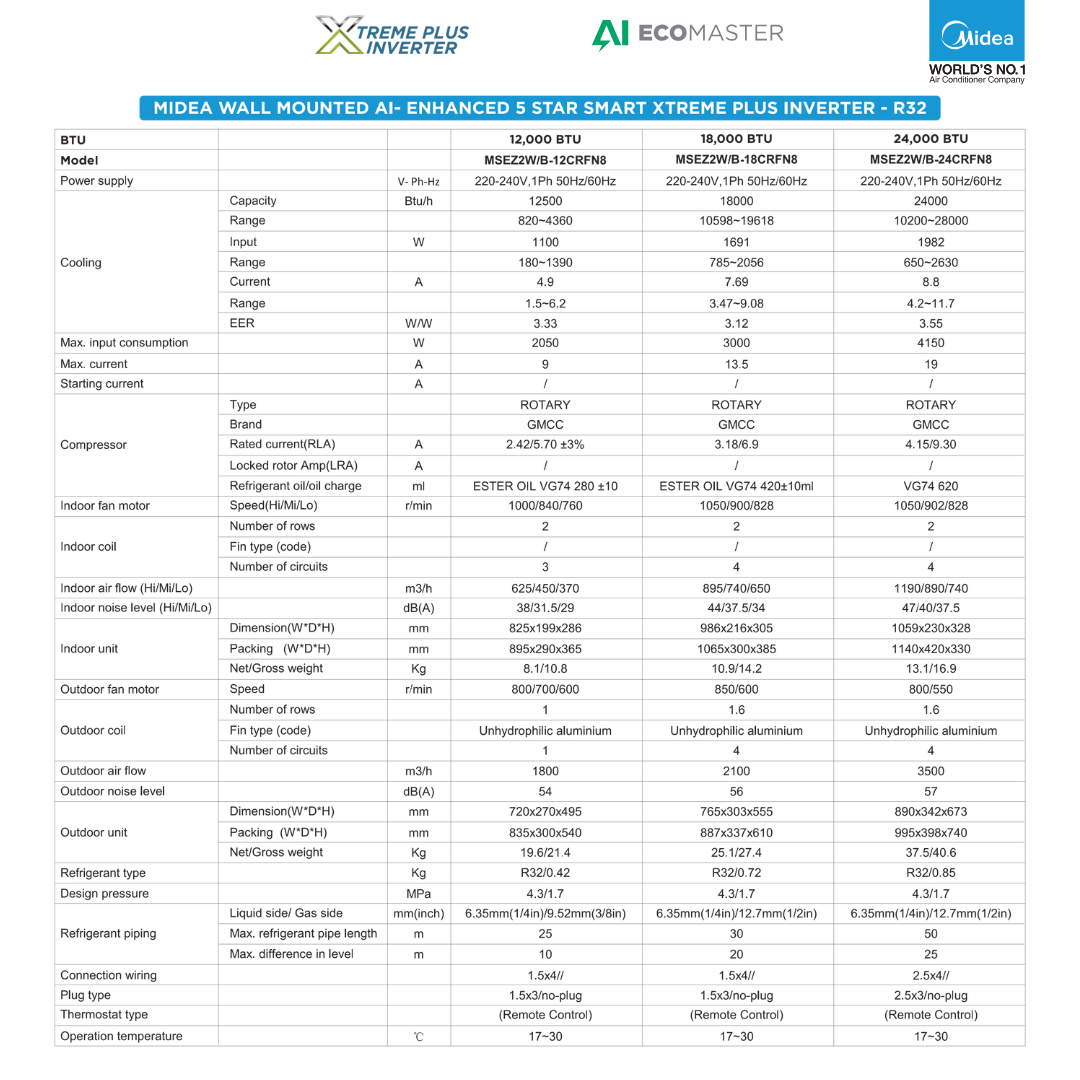 Free installation (Up to 3.5-meter piping from Indoor unit to Outdoor unit)
