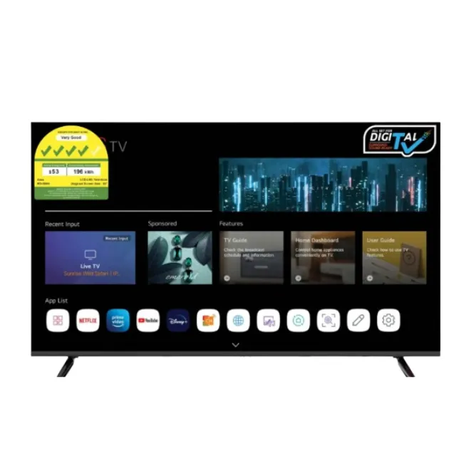 The AIWA 55” UHD Smart TV (Model: WS-558G) delivers brilliant 4K clarity, intuitive smart features, and a sleek modern design. Enjoy your favourite shows, sports, and movies in stunning detail with immersive audio-visual performance. Whether wall-mounted or stand-supported, the WS-558G blends perfectly into any home theatre setup.