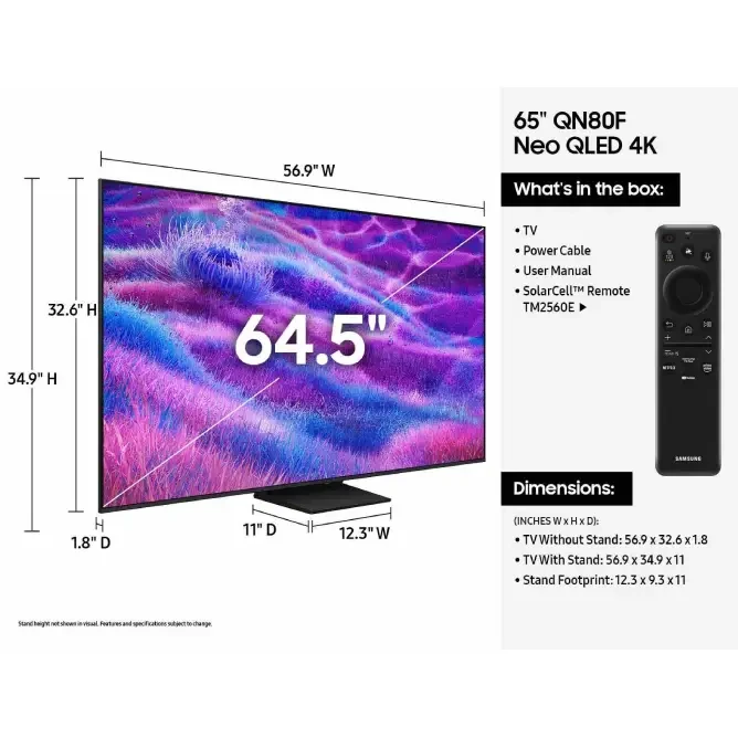 The Samsung Neo QLED 4K TV represents the next evolution of premium home entertainment. Designed to redefine how you experience movies, sports, and gaming, the 65 Inch Samsung Smart TV delivers unmatched clarity, precision, and intelligence with the powerful Samsung QN80F Vision AI TV engine. From its sleek design to its advanced Quantum Matrix Technology, every element of this Samsung 2025 4K TV has been optimized to provide a cinematic and intelligent experience that adapts to your lifestyle.