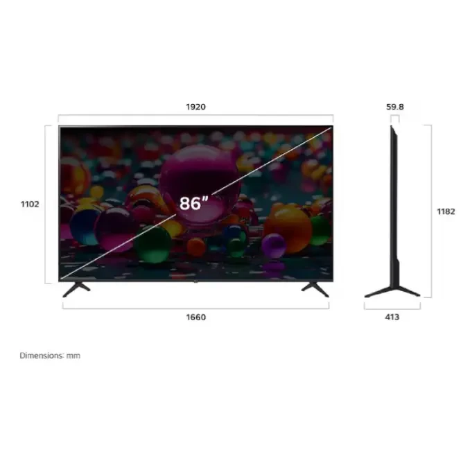 | TV Dimensions with Stand (WxHxD, mm) | 1920 x 1182 x 413 | |