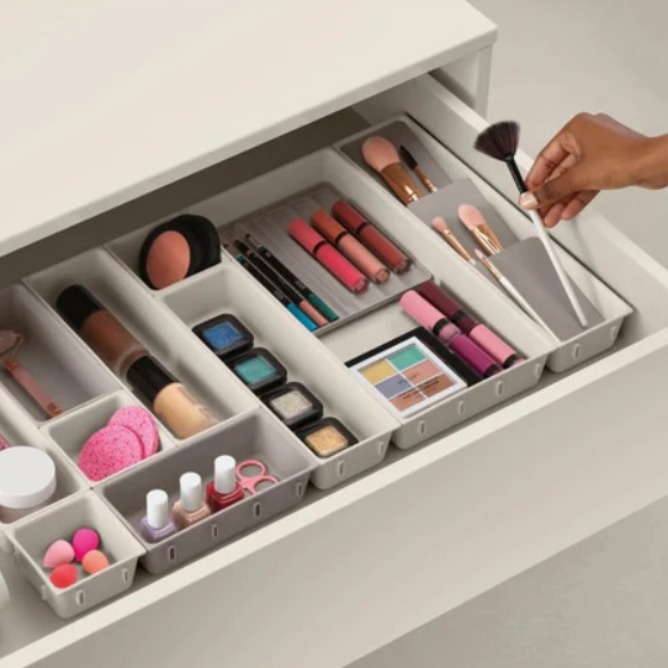Space-saving: Maximizes the use of drawer space, which can help reduce clutter on vanities and countertops.