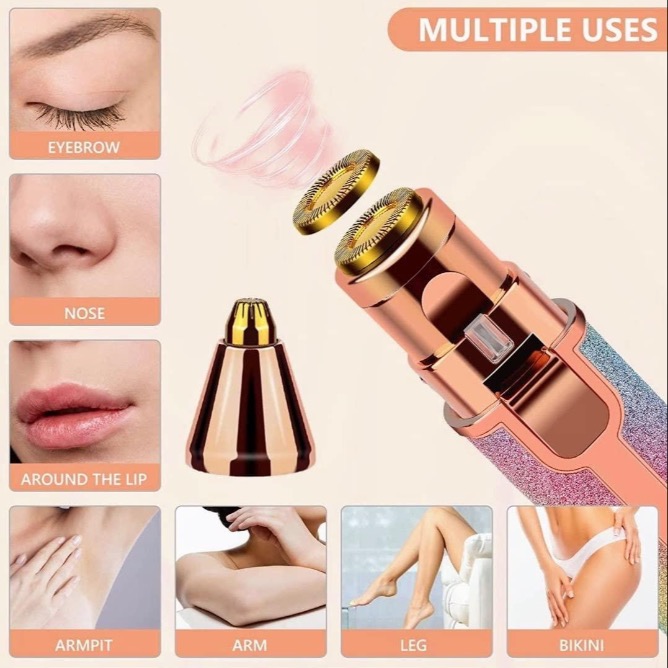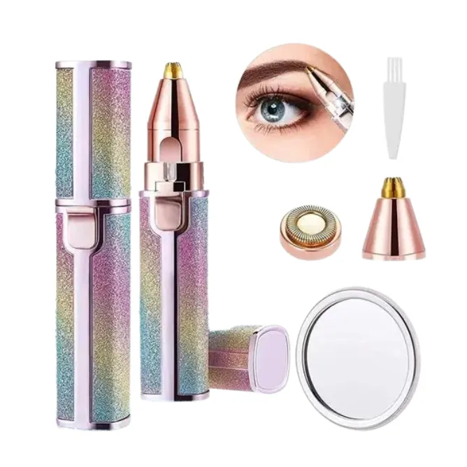 A 2-in-1 rechargeable facial and eyebrow hair remover is a compact, cordless grooming tool designed for women to gently remove unwanted facial hair and shape eyebrows at home or on the go. It combines two grooming heads—one for precise eyebrow trimming and another for fine facial hair removal—into a single USB-rechargeable device. Its lightweight, portable form factor makes it ideal for daily touch-ups and travel.