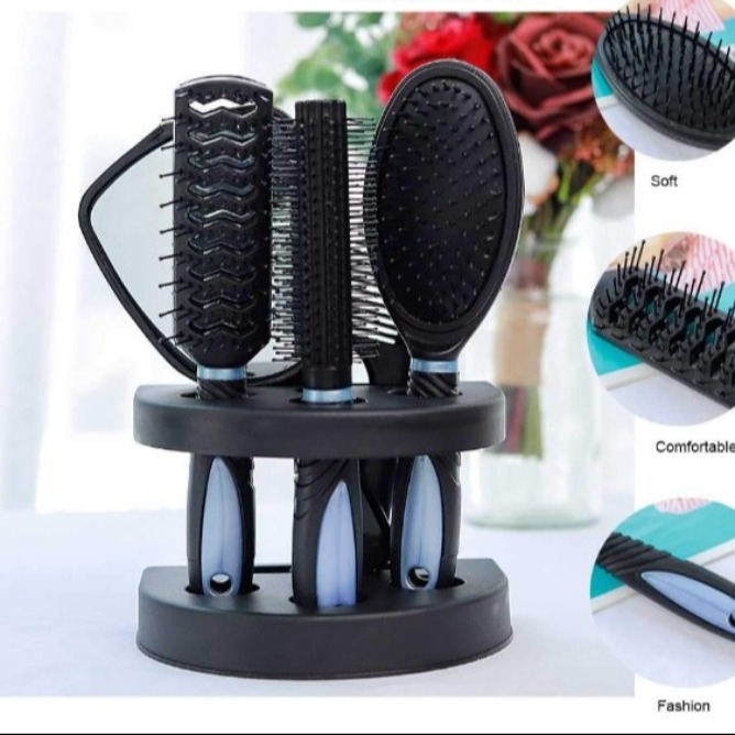 Set of 5 women’s hair brush, massage com,b with mirror holder