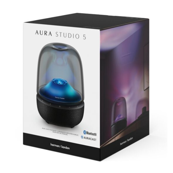 Harman Kardon Aura Studio 5 is a premium wireless speaker designed to deliver immersive, room-filling sound with iconic style. Powered by a powerful 140W RMS output, it combines rich bass from a dedicated 143 mm subwoofer with clear mids and highs from multiple mid-high drivers and a tweeter, creating a balanced and dynamic audio experience.
