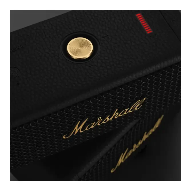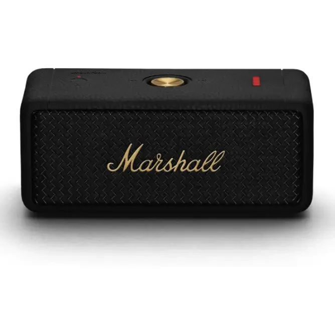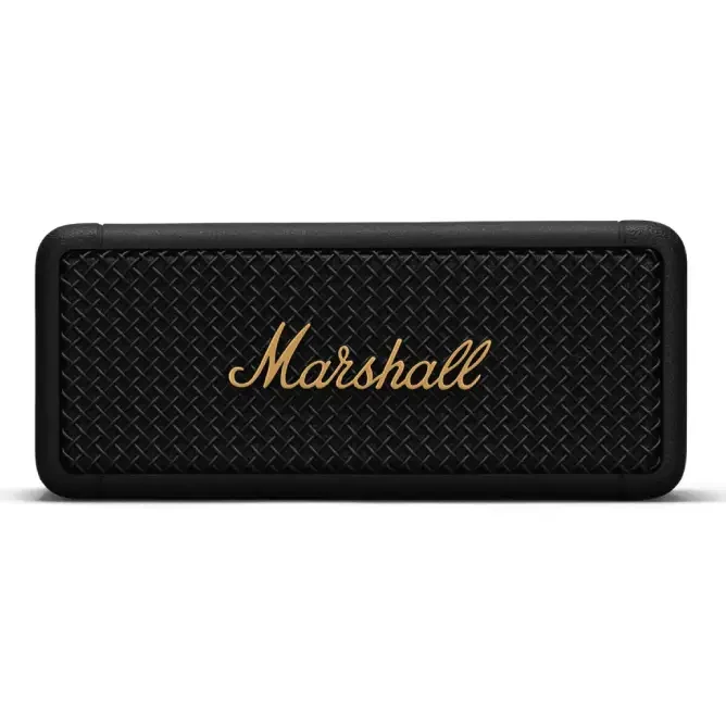 Despite its small footprint, the Emberton II packs a punch with dual full-range drivers and passive radiators, delivering deep bass, vibrant mids, and crisp highs — all wrapped in the iconic Marshall design with its signature textured finish and brass details.