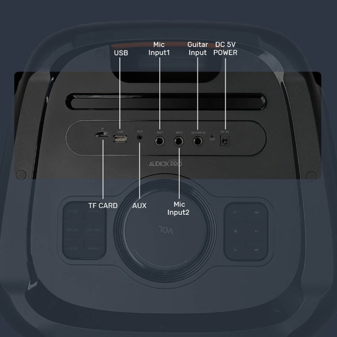 Features | 2 Wireless Microphones Included, Bluetooth v5.3, USB Playback, TF Card Playback, Auxiliary Input, Magic Sound Transform, 220 Watts Max Output, TWS Ready, Playtime Up to 3 Hours at 50% Volume |