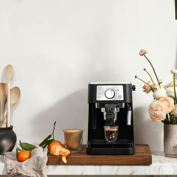 The Stilosa Espresso Machine by De'Longhi is an elegantly designed espresso machine that elevates your espresso experience at home.