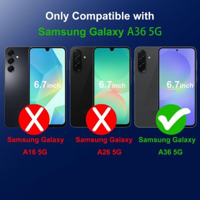 Only compatible with Samsung Galaxy A36/A56 5G 6.7 inch (2025 New Released). Package: 1pc Samsung Galaxy A36 5G Case without screen protector.