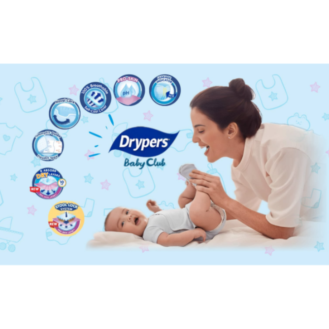 Drypers Wee Wee Dry does more than just keep baby dry and comfortable. Dryness is assured with Oriel Layer™ that ensures baby’s skin is super dry for up to 10 hours. Super soft material to ensure no red marks on baby’s skin. This helps protect baby’s skin from skin irritation. Improved with duo leak guards for maksimum leakage protection and better fit for every baby’s growth stage. Diaper changing is easier for parents too with Leakage Indicator and FlexiFIT-Tape™ features. Every piece of diaper is made to fit babies, parents and nature.