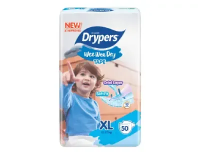 Drypers Wee Wee Dry does more than just keep baby dry and comfortable. Dryness is assured with Oriel Layer™ that ensures baby’s skin is super dry for up to 10 hours. Super soft material to ensure no red marks on baby’s skin. This helps protect baby’s skin from skin irritation. Improved with duo leak guards for maksimum leakage protection and better fit for every baby’s growth stage. Diaper changing is easier for parents too with Leakage Indicator and FlexiFIT-Tape™ features. Every piece of diaper is made to fit babies, parents and nature.