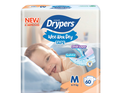 Drypers Wee Wee Dry does more than just keep baby dry and comfortable. Dryness is assured with Oriel Layer™ that ensures baby’s skin is super dry for up to 10 hours. Super soft material to ensure no red marks on baby’s skin. This helps protect baby’s skin from skin irritation. Improved with duo leak guards for maksimum leakage protection and better fit for every baby’s growth stage. Diaper changing is easier for parents too with Leakage Indicator and FlexiFIT-Tape™ features. Every piece of diaper is made to fit babies, parents and nature.