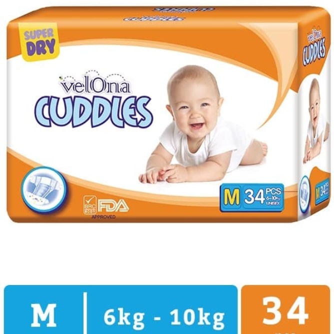 Set of 34 Velona Cuddles Disposable Baby Diapers for Medium (6-10Kg )