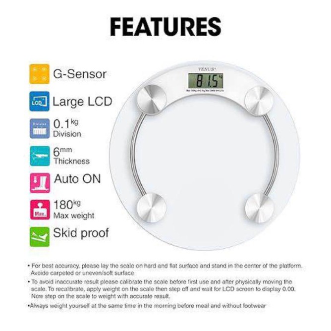 The glass scale is constructed with 8mm tempered glass that will bear your weight with zero risk of cracking or breaking.