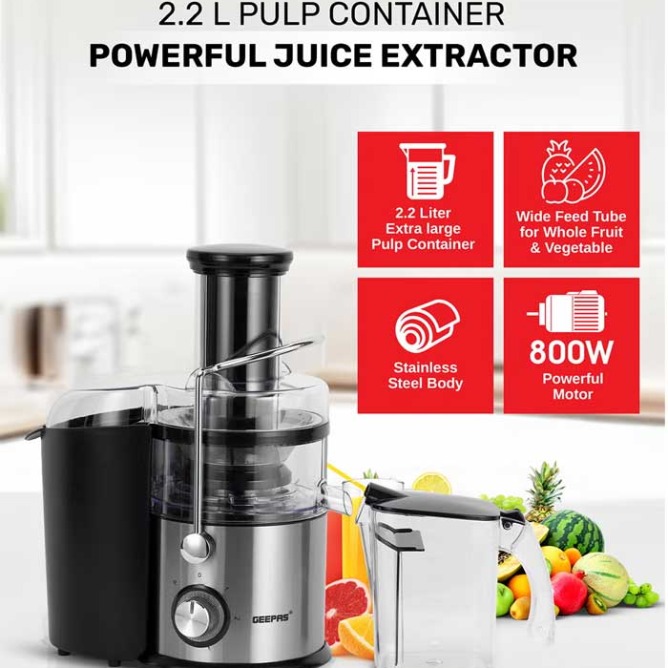 In summary, the Geepas GJE5437 juice extractor is a smart and reliable appliance for anyone serious about juicing. With its powerful motor, wide chute, dual speeds, and safety features, it takes the hassle out of juicing and lets you focus on enjoying fresh, healthy beverages. This centrifugal juicer machine brings commercial-level performance into your home — all at an affordable price.
