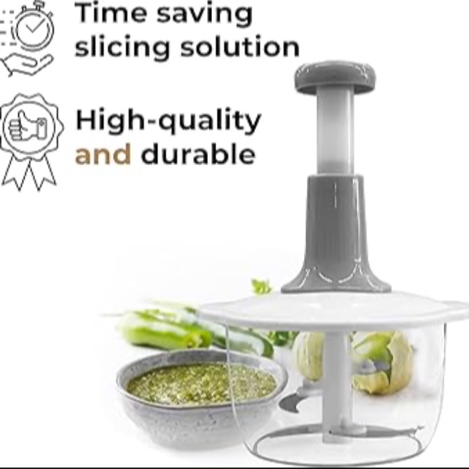 The Manual Food Processor is a compact, versatile, and easy-to-use kitchen tool designed to make food preparation fast and effortless. Perfect for chopping, slicing, dicing, and mixing vegetables, fruits, nuts, and more, it eliminates the need for electricity while giving you full control over the process. Ideal for small kitchens, outdoor cooking, or anyone who prefers a quick and healthy way to prepare meals.