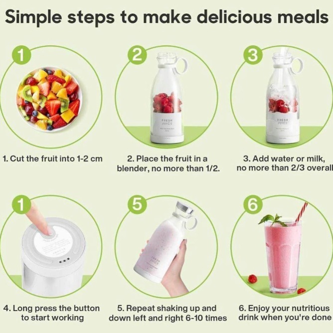 Ideal for making fresh juices, smoothies, and milkshakes anywhere.