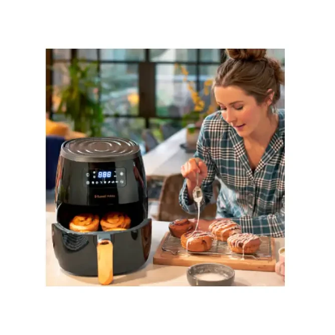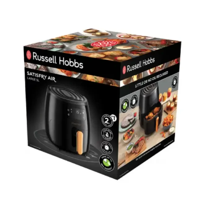 Get ready to cook up a storm in the kitchen with the Russell Hobbs Satisfry Large. It has everything you need to cook delicious food with confidence. Why dial for a takeaway when the Satisfry Large can make up to 2.1kg of chips in less time than a traditional fryer or conventional oven*, with little or no oil required, meaning less fat in the end-result. Air fried meat and fish retain their natural succulence and flavour, so if you’re not a confident cook, the Satisfry makes meals easy. With dishwasher safe parts, it can be clean and ready for your next meal without fuss or mess.