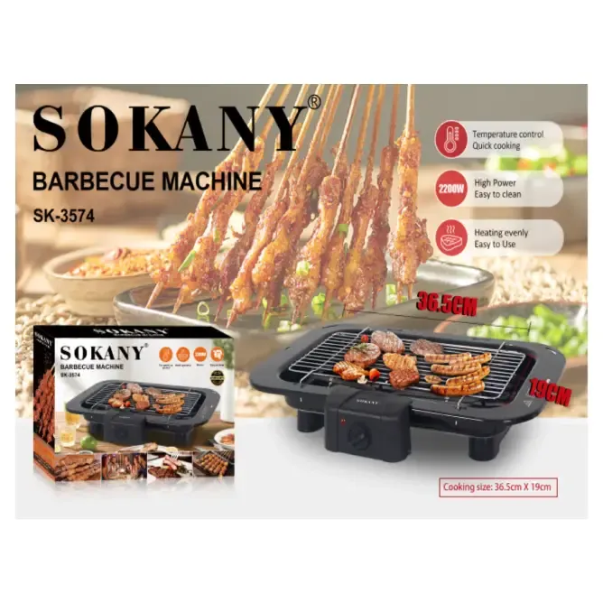 With minimal smoke and grease, this electric grill is perfect for indoor use, allowing you to savor the joy of barbecuing without the mess. The user-friendly control panel includes adjustable heat settings, giving you complete control over your cooking process. Whether you’re a seasoned chef or a novice cook, the Electric Barbecue Grill SK-3574 is your go-to appliance for creating mouthwatering dishes with ease and efficiency. Experience the joy of grilling at home with this versatile and stylish electric barbecue grill.