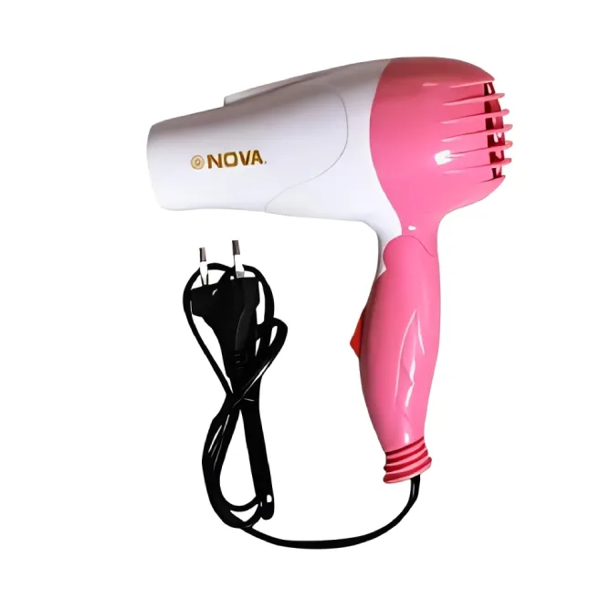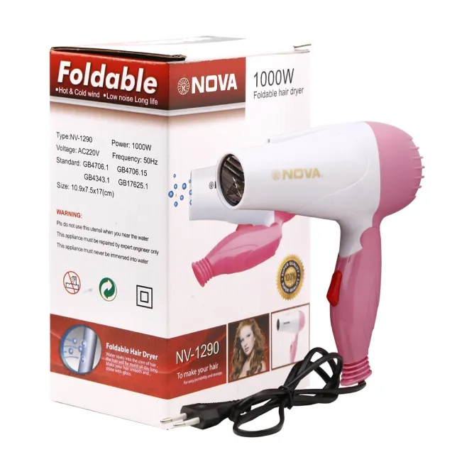 The Nova NV-1290 Hair Dryer is a 1000 W compact and foldable hair dryer designed for quick, efficient drying and easy styling at home or on the go. Its lightweight body and foldable handle make it ideal for travel, daily grooming, or salon-like styling without taking up much space. The dryer delivers consistent airflow that helps dry hair quickly while minimizing heat damage.