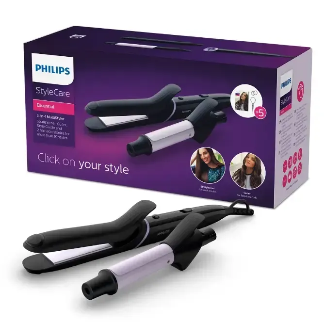 The Philips StyleCare Multi-Styler BHH811 is a versatile hair styling tool designed to help you create over 10 different hairstyles with ease. Whether you're aiming for sleek straight hair, bouncy curls, or elegant updos, this multi-styler has you covered.