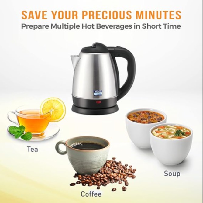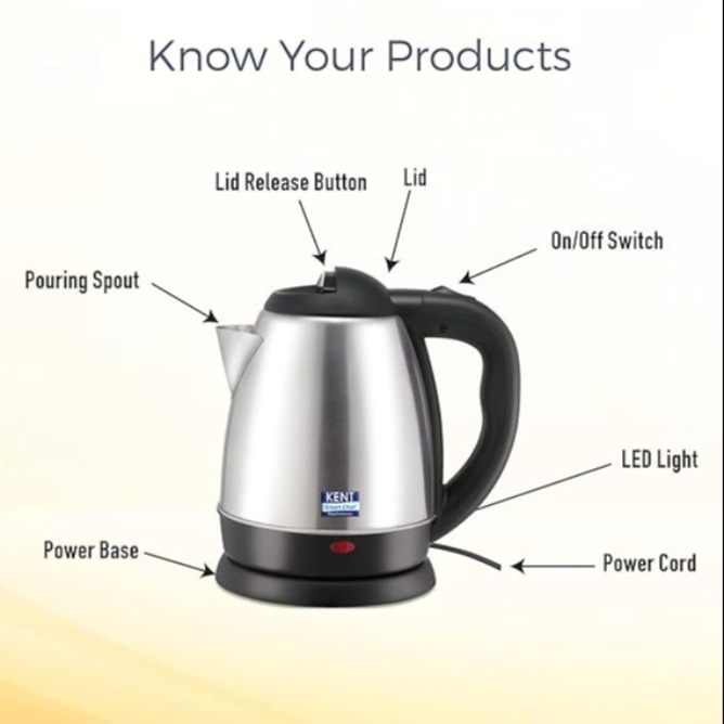 Presenting Kent’s Amaze Electric Kettle, a modern and safe way to boil water in just a few minutes. The 1500W kettle is a perfect blend of style and performance & has a capacity of 1.8L that boils enough water to prepare instant coffee, tea, and soup for around 5-6 people at a time. It is a portable kitchen appliance that can be carried without having concerns about safety, thanks to its cool-touch plastic exterior. The 360° rotation base lets you pour water conveniently – just detach it from the surface and 1500W, 1.8L Electric Kettle