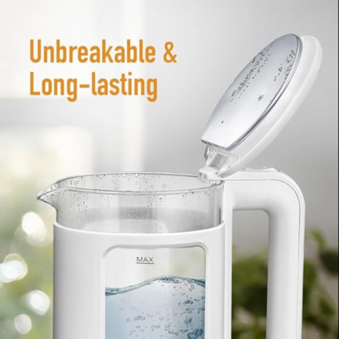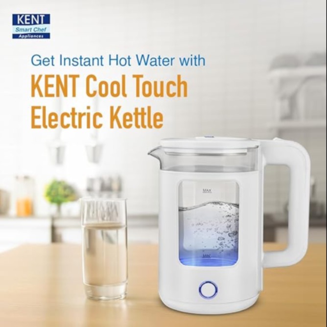 KENT's Cool Touch Glass Kettle is a fantastic addition to any kitchen and is a reliable, long-lasting item for regular use. This glass kettle is far more effective than regular glass on the market since it is made of borosilicate glass and has a cool touch outer cover that covers the body aesthetically. It also won't break easily or scratch easily. Serving five or six people at once is simple thanks to its 1.8L capacity. Pouring is now a breeze because of its 360° spinning function. Simply take the kettle out of its foundation and move it around the room. In the event of overheating or dry boiling, the kettle's auto shut-off mechanism will switch it off to prevent damage to the appliance and to ensure user safety.