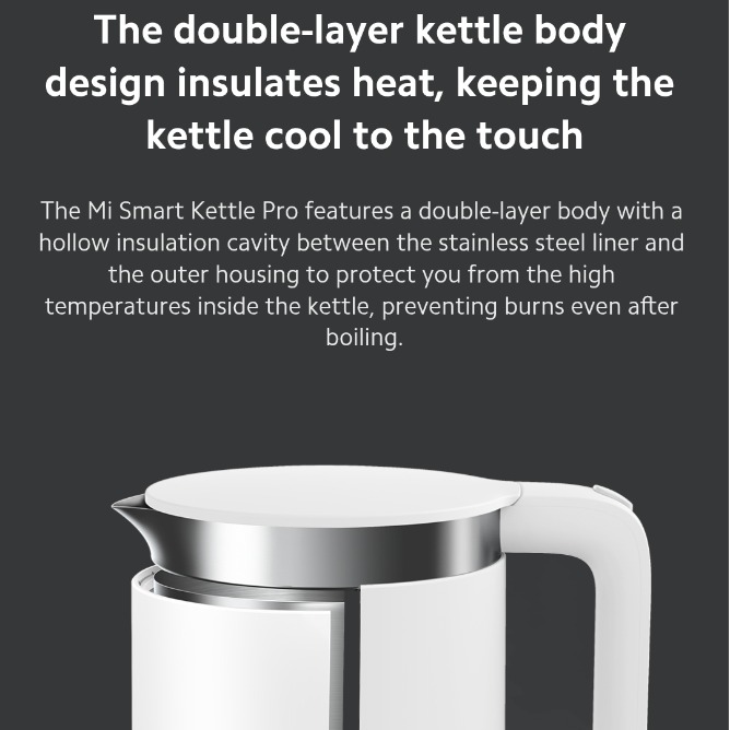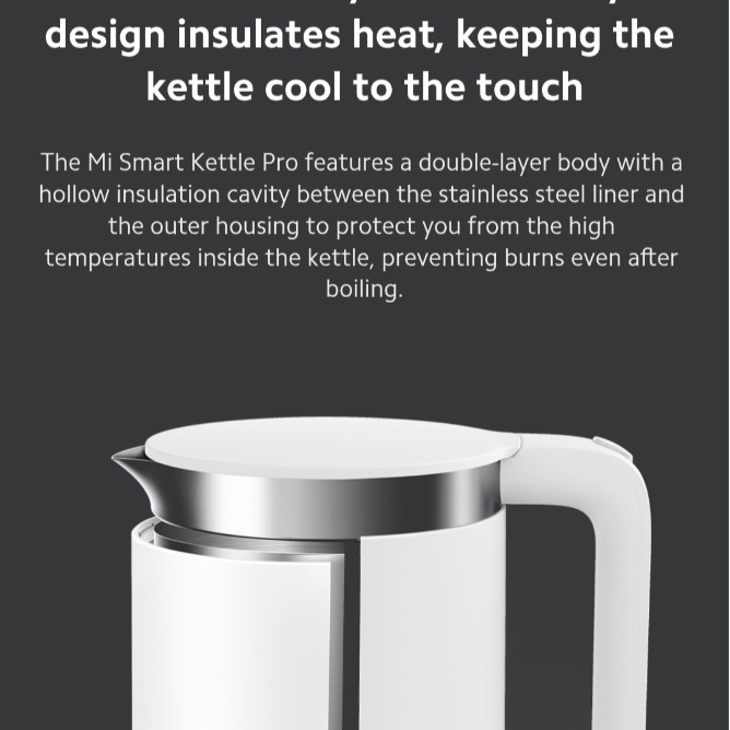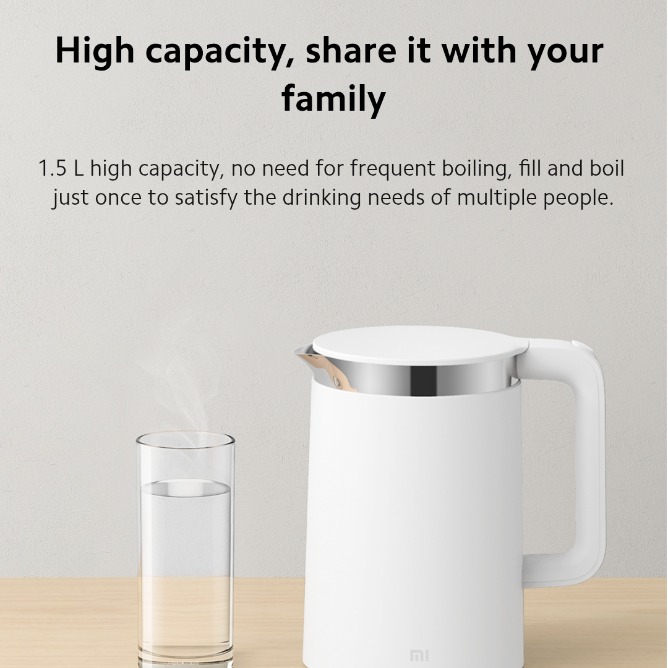 With a 1.5L large capacity, the Xiaomi Mi Smart Kettle Pro has many great features over the previous generation and caters to more than a few people at any given time. It can boil water quickly and easily thanks to its high power output. It also features a high definition digital screen to display its status and keep you up to date.