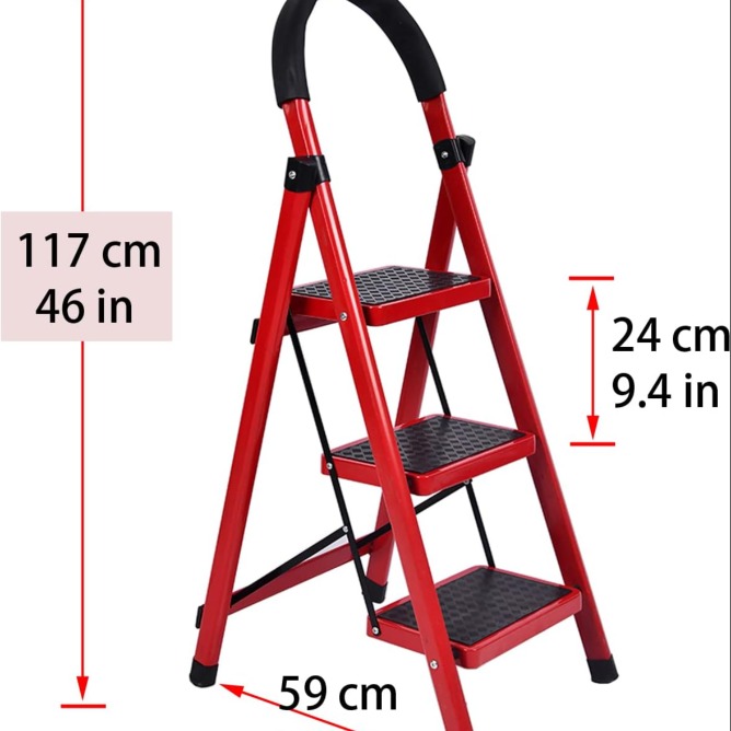 【3 Step Ladder】The step ladder is made of solid carbon steel with great strength and hardness. Its extreme elasticity can considerably increase the durability of the product. The advanced frame and structure make your use safer.