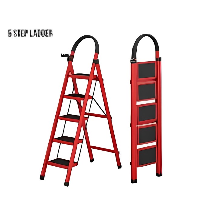 Elevate your DIY projects with our professional folding step ladder, perfect for both home and work use. Crafted from sturdy carbon alloy, our lightweight ladder can be easily moved around while you work, or transported to job sites. Our ladder boasts various safety features, such as built-in strengthening beams, a stabilizing security lock, anti-slip rubber feet, and high-traction treads that are resistant to water, oil, and most chemicals. Furthermore, it has an integral padded handrail, providing you with extra support as you work at heights.