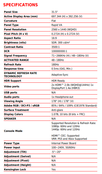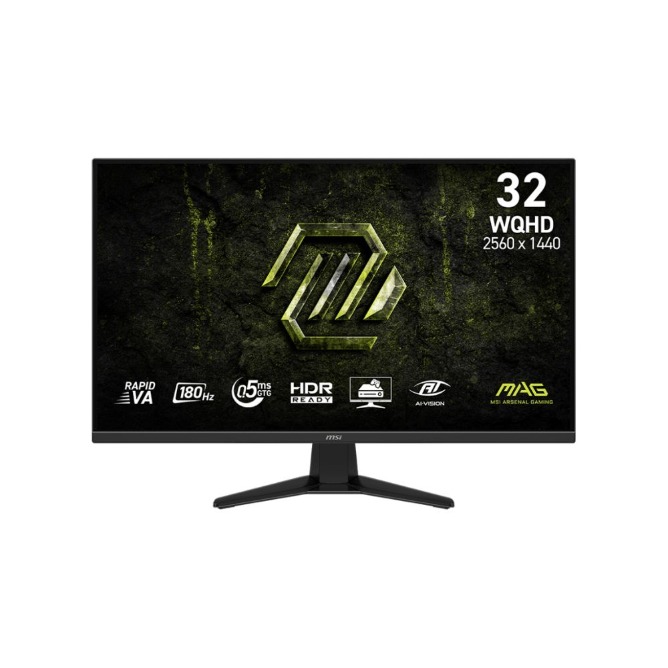 Experience immersive gaming with the MAG 325QF E18V gaming monitor. It features a 2560x1440 (WQHD) panel, a 180Hz refresh rate, and a rapid 0.5ms (GtG, Min) response time. The monitor is HDR Ready, enhancing eye-catching details through adjustments in contrast and shadows. Designed for competitive FPS, first-person RPG/MMORPG, and flight/racing simulator genres, the MSI MAG 325QF E18V gaming monitor takes casual gaming to a new level, challenging players to see beyond the game.