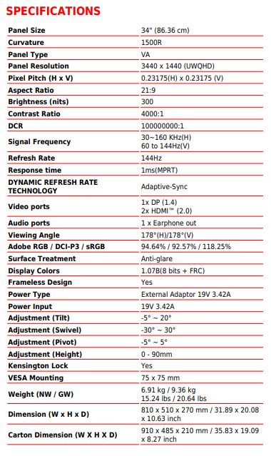 Visualize your victory with MSI MAG342CQR Curved Gaming™ monitor. Equipped with a 3440x1440, 144hz Refresh rate, 1ms response time panel, MAG342CQR will give you the competitive edge you need to take down your opponents. Built with adaptive sync, MAG342CQR can match the display's refresh rate with your GPU for ultra-smooth gameplay. Make sure you can hit your mark with all the latest technologies built-in the MSI Curved Gaming™ monitor for competitive play.