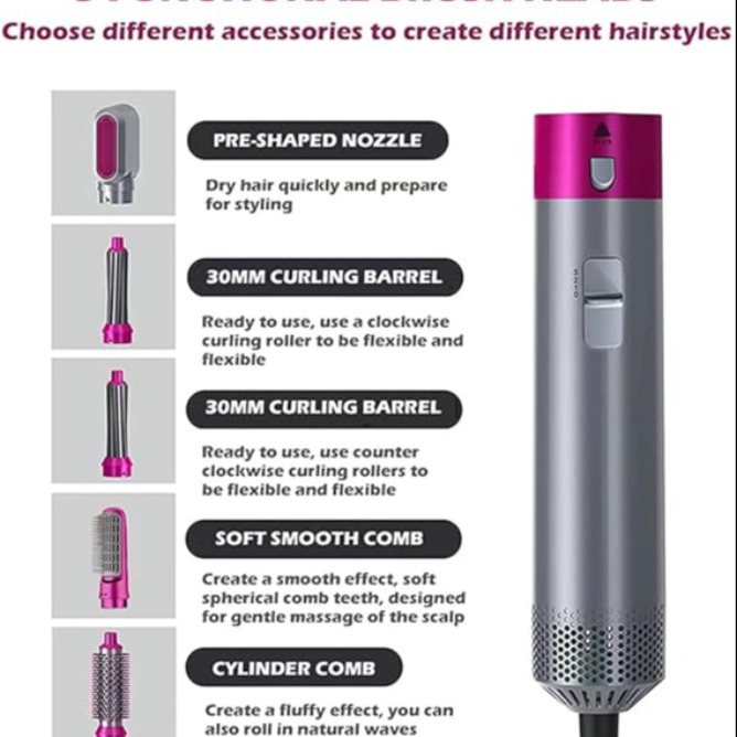 5 In 1 Hair Dryer Air Brush Styler And Volumizer Hair Straightener Curler Comb Negative Ion One Step Hair Dryer Brush Wounder Full Styler
