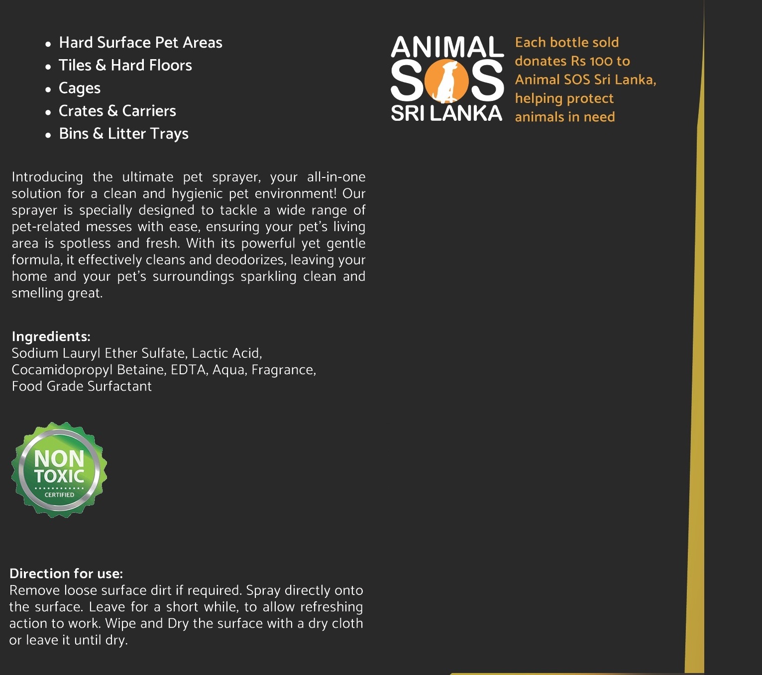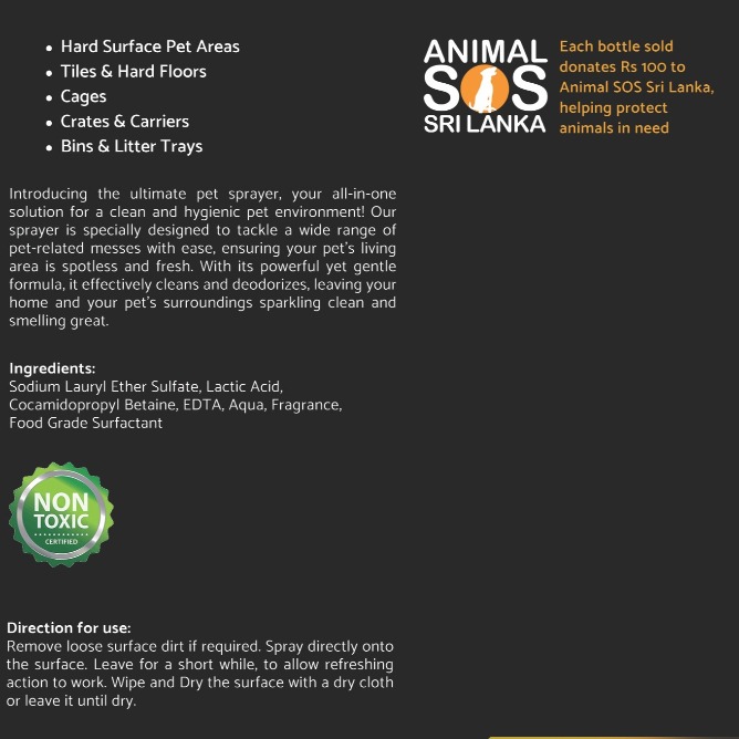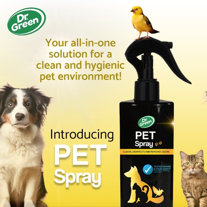 Dr Green Pet Spray, the Premium pet sprayer that is your all-in-one solution for a clean and hygienic pet environment. Specially designed to tackle a wide range of pet-related messes with ease, ensuring your pet's living area is spotless and fresh. it effectively cleans and deodorizes.