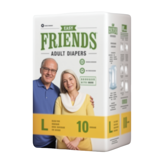 Friends Adult Diapers (L) 10'S is a pack of ten large-sized adult diapers designed for individuals with incontinence. They are made with soft, breathable materials to provide comfort and prevent leaks. The diapers feature a triple protection system that helps to lock in fluids, eliminate odors, and keep skin dry.