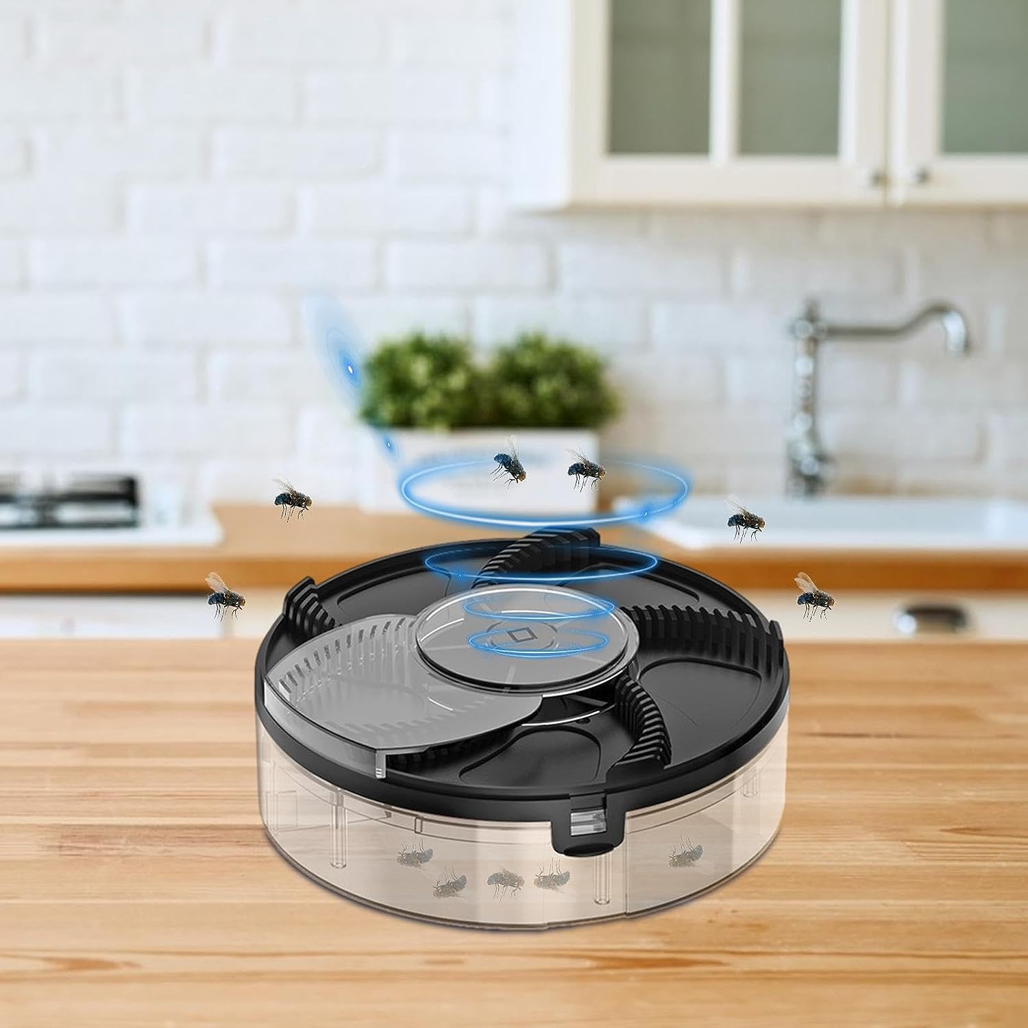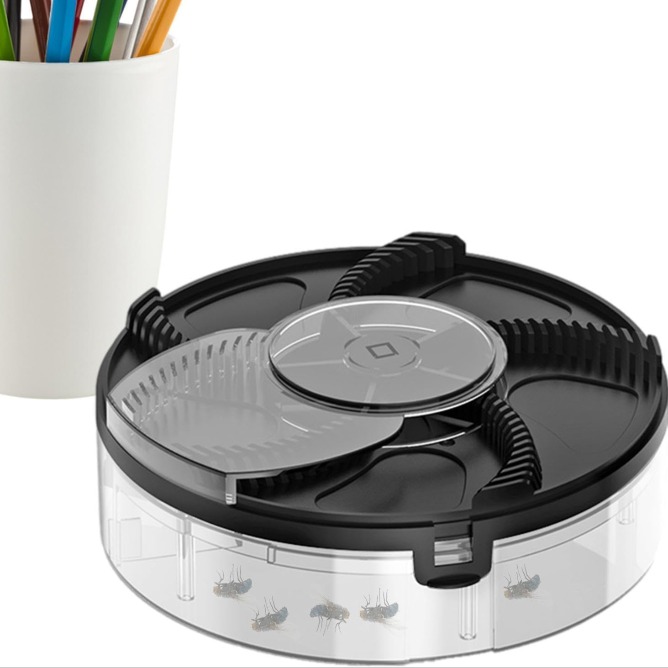 The fly is attracted by the bait and transferred into the box by the rotating plate.