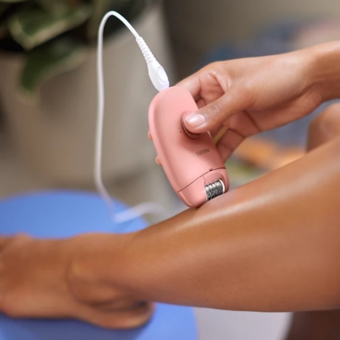 Hair Removal: Efficient epilation system, catches hairs as short as wax, ideal for legs.