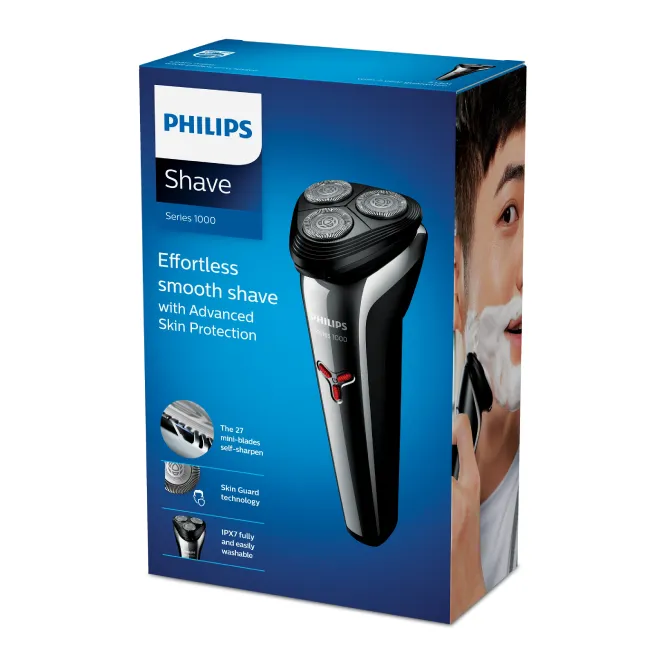 The new affordable shaver Series 1000 by Philips gives you effortless smooth shave with advanced skin protection. High quality self-sharpening blades and flex heads that move in 3 directions ensure you get an enjoyable shaving experience.
