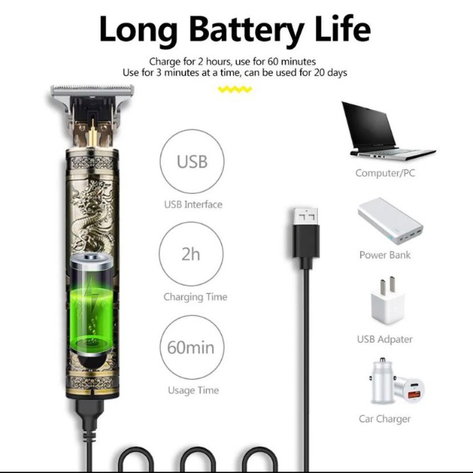 Travel-Friendly: Compact and lightweight, the Vintage T9 Trimmer is perfect for travel. Its sleek design fits easily into your luggage, making it the ideal companion for on-the-go grooming.