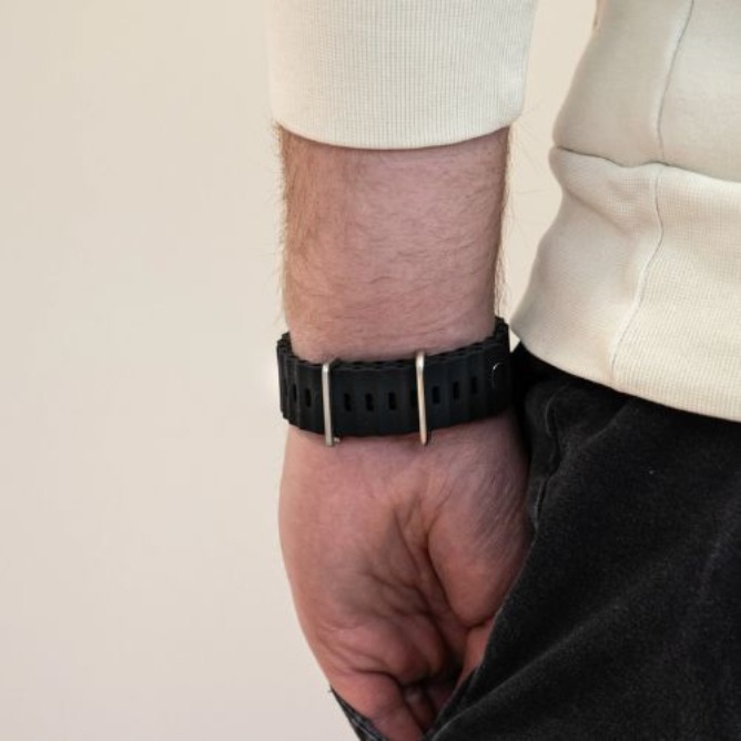 Upgrade your Apple Watch with the Ocean Strap Black, designed for strength, comfort, and style. Made from high-quality silicone, this strap offers a secure fit with its dual metal loop system while remaining lightweight and flexible.