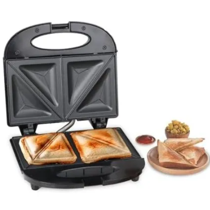 Easy‑Lock Lid / Snap Closure The lid locks shut securely for even pressing and consistent sandwich shape.