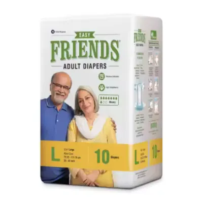 Friends Adult Diapers (L) 10'S is a pack of ten large-sized adult diapers designed for individuals with incontinence. They are made with soft, breathable materials to provide comfort and prevent leaks. The diapers feature a triple protection system that helps to lock in fluids, eliminate odors, and keep skin dry.
