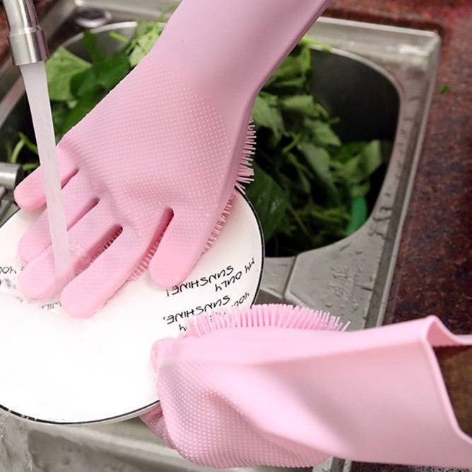 Some silicone models feature integrated bristles or textured palm surfaces for scrubbing away grease and grime — eliminating the need for separate sponges or brushes