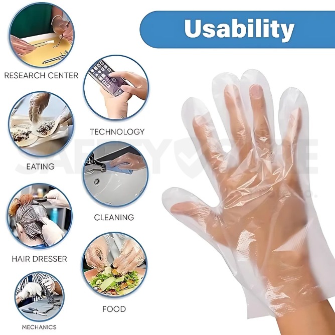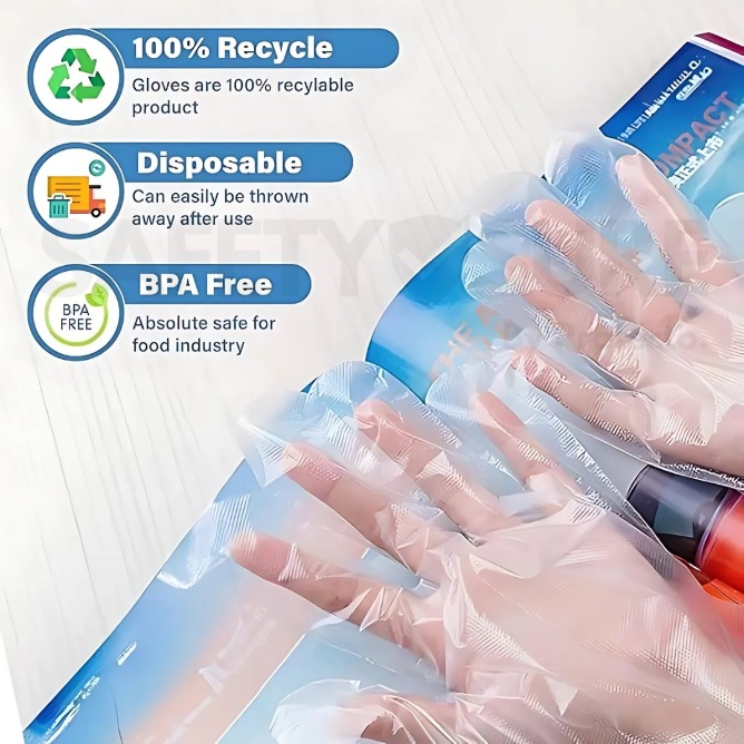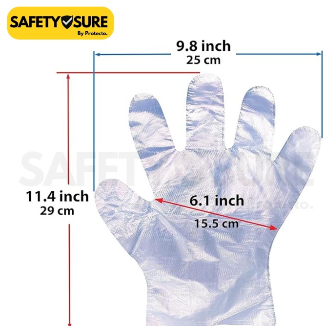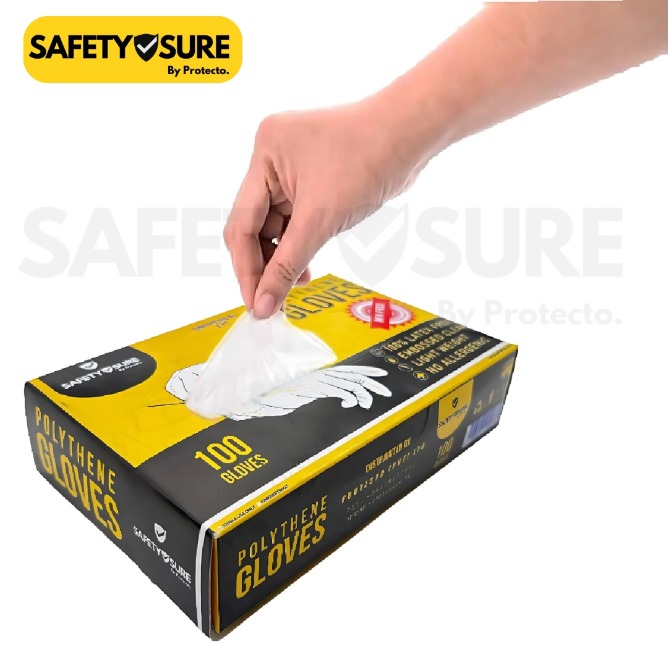 Safetysure Disposable Polythene Gloves – 100 Pcs | Food Safe, Hygienic, Lightweight & Comfortable Gloves for Cooking, Cleaning & Everyday Use