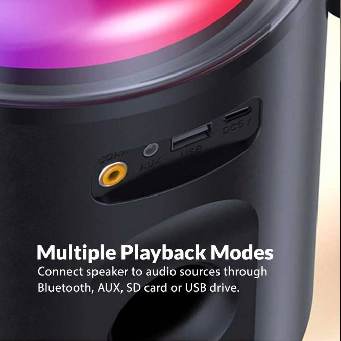 | Playback modes / connections | Bluetooth, SD / TF card, USB, AUX, Coaxial |
