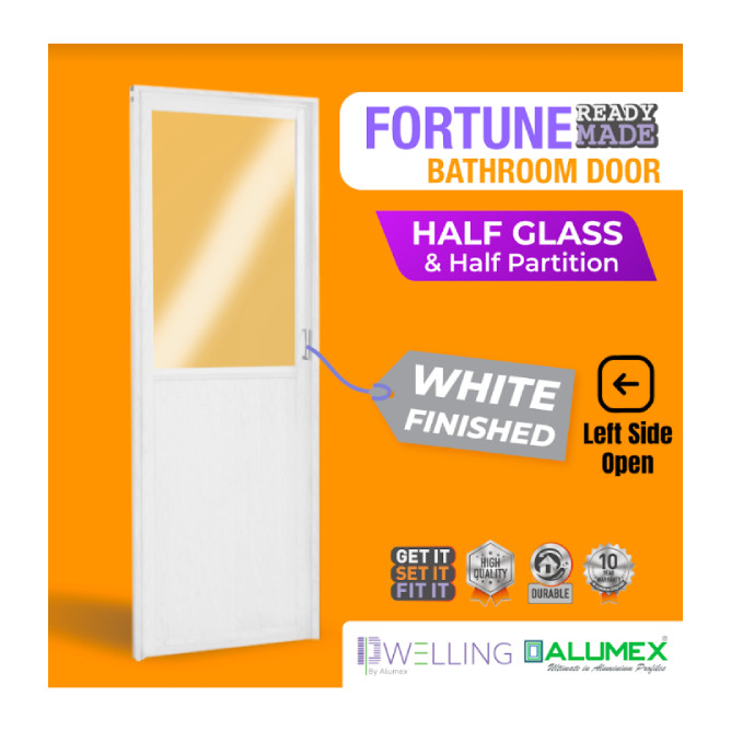 ALUMEX Fortune Full Panel Bathroom Door with Half Glass and Partition - White (Left Side): Best Alumex Tools & Home Improvement for Sale | Best Price in Sri Lanka 2026 1