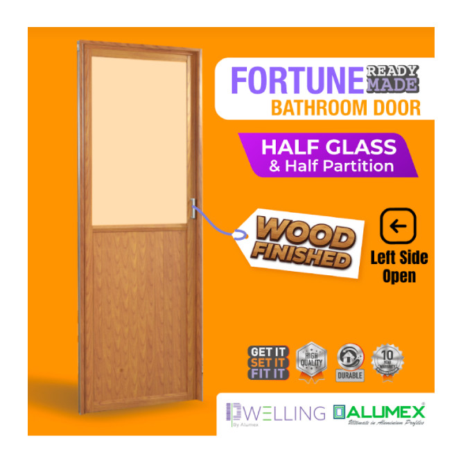 ALUMEX Fortune Full Panel Bathroom Door with Half Glass and Partition - Wood Finish (Left Side): Best Alumex Tools & Home Improvement for Sale | Best Price in Sri Lanka 2026 1