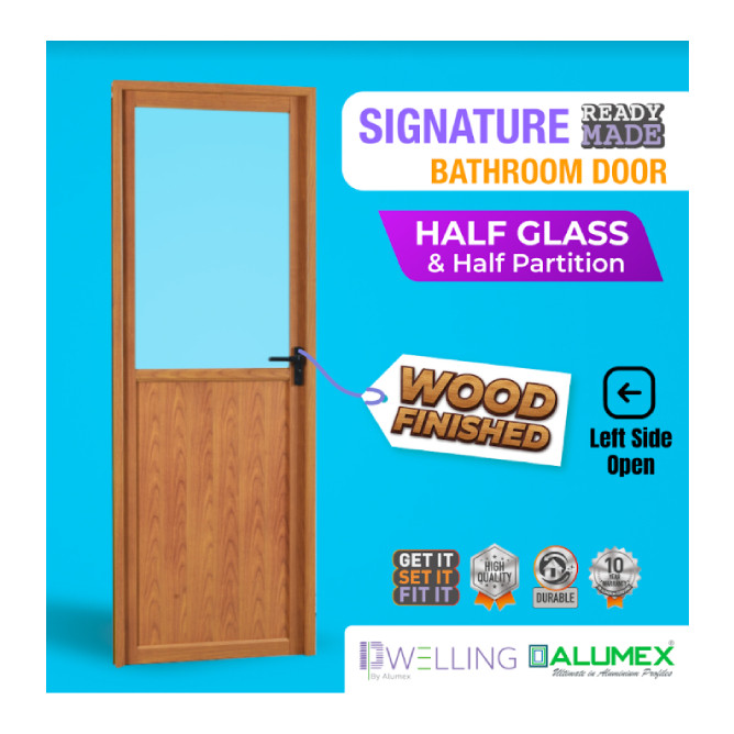 ALUMEX Signature Full Panel Bathroom Door with Half Glass and Partition - Wood Finish (Left Side): Best Alumex Tools & Home Improvement for Sale | Best Price in Sri Lanka 2026 1