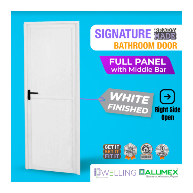 ALUMEX Signature Full Panel Bathroom Door with Middle Bar - White Finish (Right Side): Best Alumex Tools & Home Improvement for Sale | Best Price in Sri Lanka 2026 1