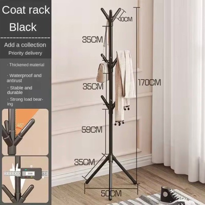 Specifications: • Product Type: Floor Standing Clothes Rack / Coat Stand • Design: Tree Branch Shape with Multi Hooks • Material: Durable Plastic / Metal (Model Dependent) • Installation: Freestanding, Easy Assembly • Mobility: Lightweight and Portable • Usage: Clothes, Coats, Hats, Bags, Accessories Storage • Placement: Living Room, Bedroom, Entryway, Office • Structure: Stable Base with Space-Saving Vertical Design • Color: Varies by Model • Package Includes: 1 x Coat Rack Stand